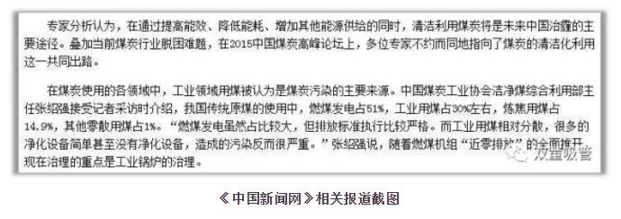中國煤炭工業(yè)協(xié)會張紹強主任接受記者采訪時介紹,我國傳統(tǒng)原煤的使用中,工業(yè)用煤占30%左右。在煤炭使用的各領(lǐng)域中,工業(yè)領(lǐng)域用煤被認(rèn)為是煤炭污染的主要來源。