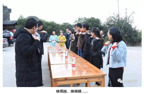 咦!這是發(fā)生了什么?原來,這是“雙童”人在一起在做團(tuán)建熱身活動(dòng)——搶礦泉水呢!