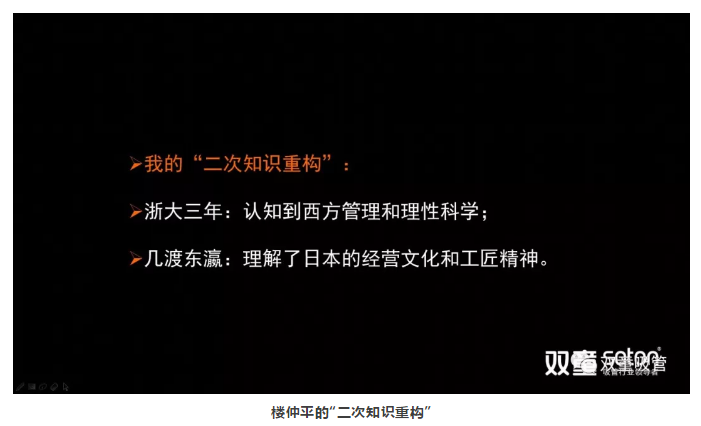 于是,他選擇到浙大學(xué)習(xí)進(jìn)修五年,沉下心來(lái),拿起書(shū)本,重新開(kāi)始學(xué)習(xí),并在這期間積累了不少管理理念和商業(yè)知識(shí),努力向知識(shí)界和學(xué)術(shù)界靠攏!