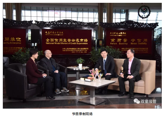 12月6日,金華電視臺(tái)改革開放40周年專題節(jié)目“騰飛”篇章在義烏國(guó)際商貿(mào)城四區(qū)錄制。“雙童”樓仲平受邀與主持人賀爭(zhēng)怡、浙江師范大學(xué)經(jīng)濟(jì)與管理學(xué)院院長(zhǎng)陸立軍教授、浪莎集團(tuán)總裁翁榮弟先生同臺(tái)親密互動(dòng)。