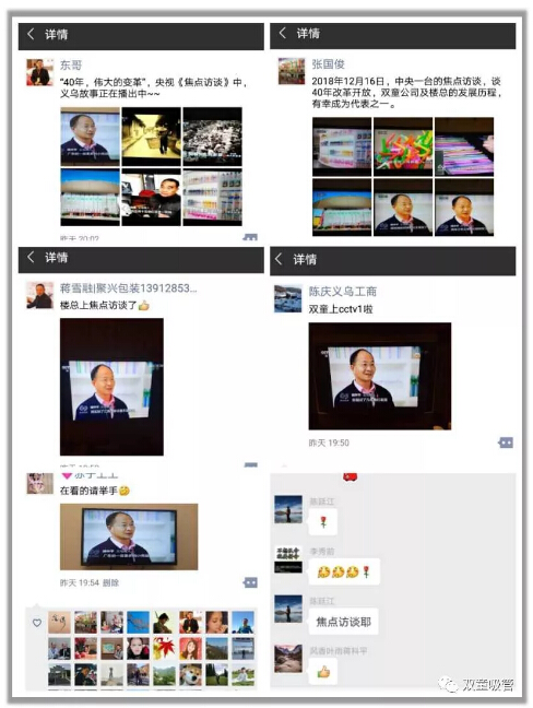 12月16日晚,中央電視臺(tái)《焦點(diǎn)訪談》節(jié)目播出了改革開放40周年專題節(jié)目,聚焦義烏“雞毛換糖”精神,全面展示義烏的發(fā)展和文化。作為末代貨郎的樓仲平也再次登上《焦點(diǎn)訪談》節(jié)目,在本期節(jié)目中分享了改革開放40周年自己的創(chuàng)業(yè)歷程!