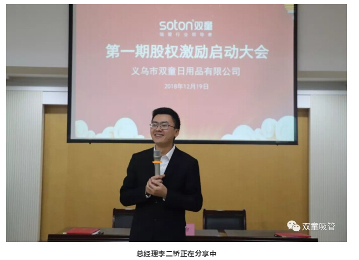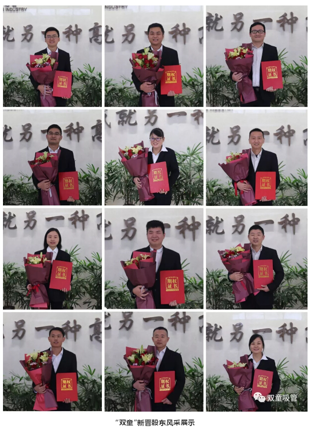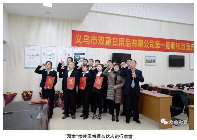 12月19日,雙童吸管第一期股權(quán)激勵(lì)啟動(dòng)大會(huì)隆重舉行,“雙童”12位新晉股東脫穎而出!他們大多都是從基層做起,完成了從打工仔到新晉股東的勵(lì)志蛻變!