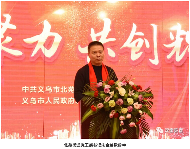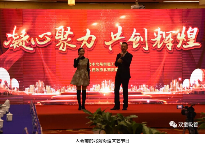 欣賞完文藝節(jié)目后,全體參會人員觀看了北苑發(fā)展宣傳片。短短幾分鐘的視頻,展示了北苑人民憑借敢闖敢干的拼搏精神和創(chuàng)業(yè)精神,抓住了一個又一個的發(fā)展機遇,實現(xiàn)了一次又一次的華麗蛻變,從而逐步成為義烏市的工業(yè)重區(qū)、經(jīng)濟強區(qū)、城市新區(qū),全面推進社會經(jīng)濟的協(xié)調(diào)發(fā)展,取得了令人矚目的成績。