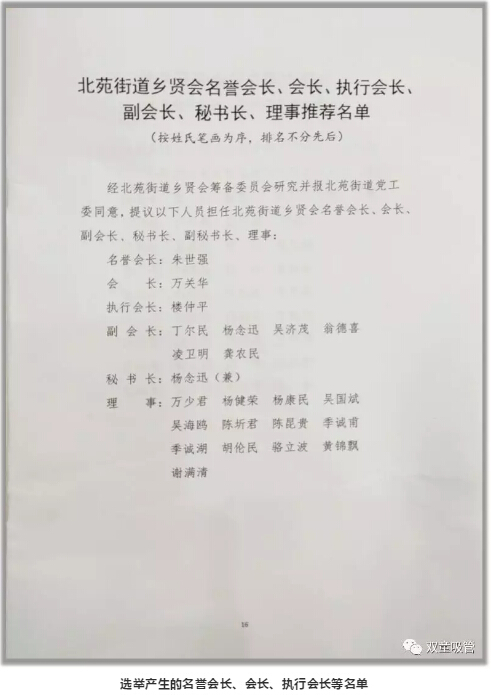 因此,大會上討論通過了北苑街道鄉(xiāng)賢會章程(草案)、北苑街道鄉(xiāng)賢會選舉辦法(草案)、選舉產(chǎn)生了北苑街道鄉(xiāng)賢會名譽會長、會長、執(zhí)行會長、副會長、秘書長以及理事成員。其中“雙童”樓仲平被推選為北苑街道鄉(xiāng)賢會執(zhí)行會長。