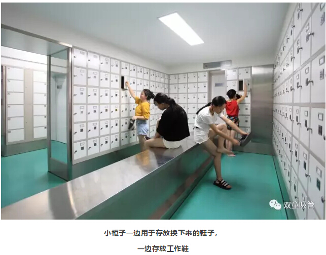 1、員工進入車間的第一步,就是要在更鞋區(qū)將自己的鞋子換為工作鞋。