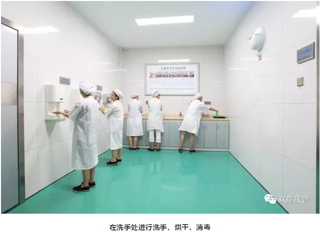 除了生產現場的工作環(huán)境之外,進入車間前的一系列衛(wèi)生防護標準也至關重要!在“雙童”,每位員工在進入車間前,都要按照規(guī)范進行消毒防護措施,過五道門六道關卡才能進入車間工作: