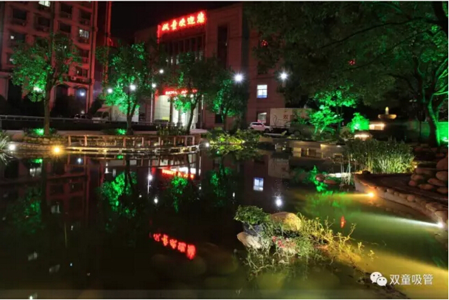 當(dāng)夜幕降臨,走在鑲嵌在地面上的鵝卵石小徑上,掩映在綠樹成蔭下的路燈也是美麗極了!夜色初上,朦朦朧朧的淡淡燈光,與月色交相輝映,夜幕下的“雙童”也別有一番風(fēng)味!