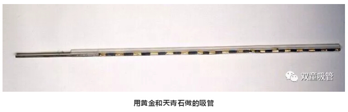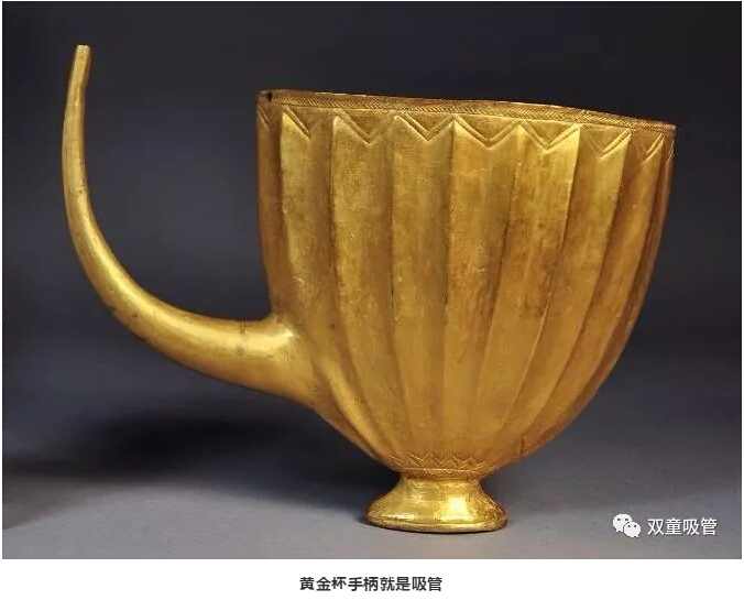 在現(xiàn)在的伊拉克南部,歷史學家們發(fā)現(xiàn)了亞述王朝初期的烏爾城王后普阿比的墓室中,她的黃金杯手柄就是吸管,她可以通過手柄來飲用杯子里的啤酒。同時,歷史學家們還在墓室中發(fā)現(xiàn)了一根用黃金和天青石做的吸管。