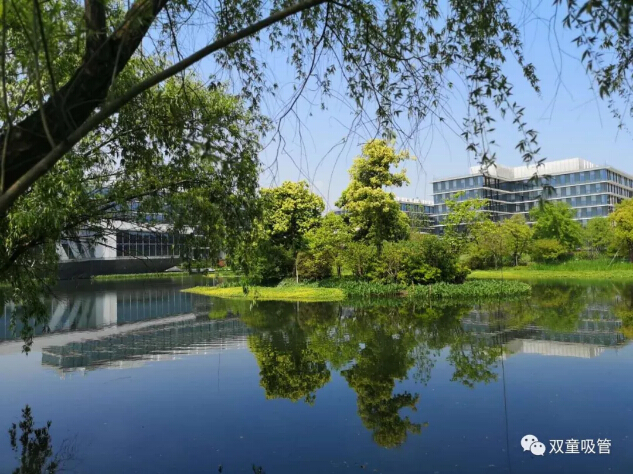 離開(kāi)辦公區(qū),漫步在園區(qū)內(nèi),建筑、樹(shù)木倒影在水中,景色真是太美了!