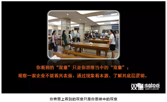 樓仲平以“雙童”為例:你所看到的“雙童”一切都是假象,如果你學(xué)了只有害處。“雙童”的餐桌是20000元一張,你可能會覺得一張桌子20000元很貴,但是你一定要洞透‘雙童’為什么會這么做,企業(yè)這樣做的底層邏輯在哪里,唯有你探究到它的底層邏輯,才是亙古不變。