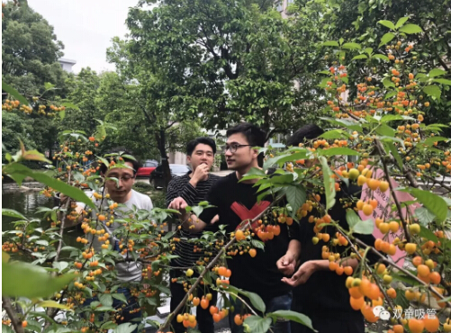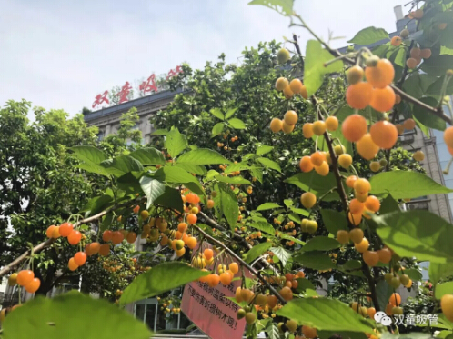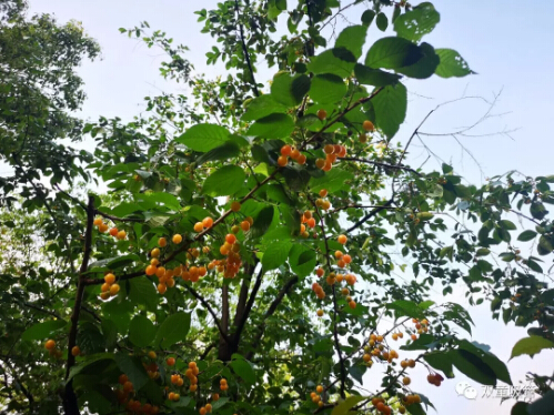 看!“雙童”的這幾棵櫻桃樹上,掛滿了紅色的果實(shí),點(diǎn)綴在繁密的綠葉間,令人垂涎欲滴!