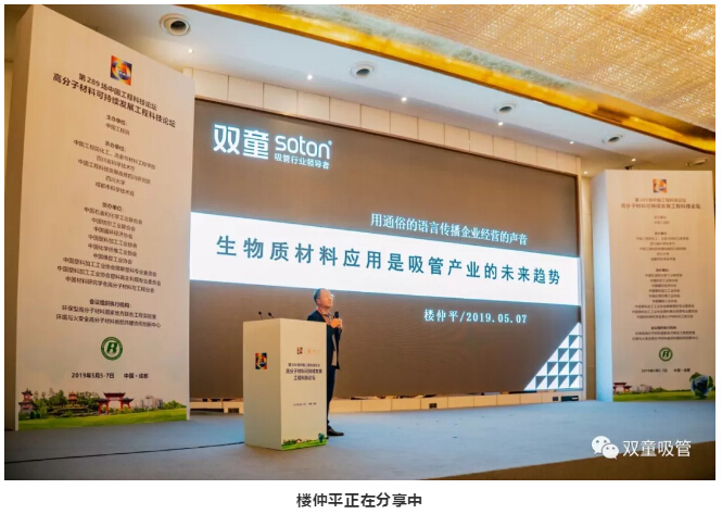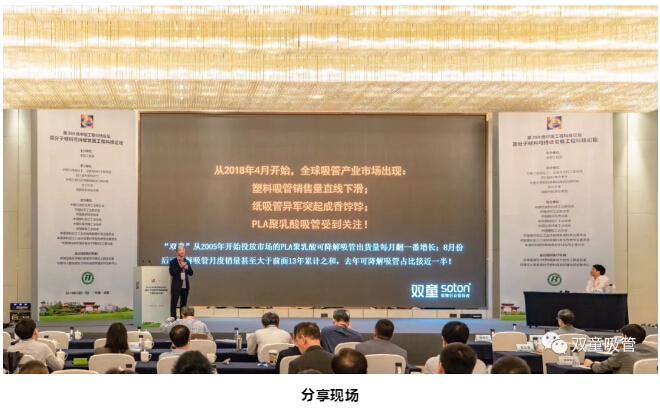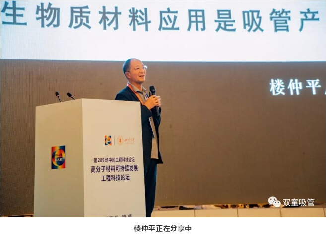 在這樣“談笑有鴻儒,往來無白丁”的重要場(chǎng)合,所有院士的分享都采用了英文課件,信息量超大。作為受邀分享嘉賓之一,“雙童”樓仲平也從吸管產(chǎn)業(yè)角度出發(fā)分析在禁塑大趨勢(shì)下吸管行業(yè)的發(fā)展方向,為大家?guī)砹?/span>《生物降解材料應(yīng)用是吸管產(chǎn)業(yè)的未來發(fā)展趨勢(shì)》主題分享!