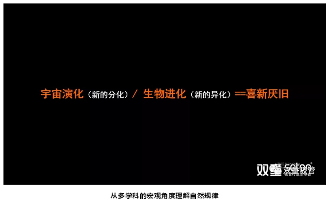 認知創(chuàng)新,需要創(chuàng)業(yè)者打開眼界,多去學(xué)習(xí)那些看似“無用”的知識,運用天文學(xué)、生物學(xué)、物理學(xué)的宏觀角度,理解在“自然規(guī)律”的演繹和進化。