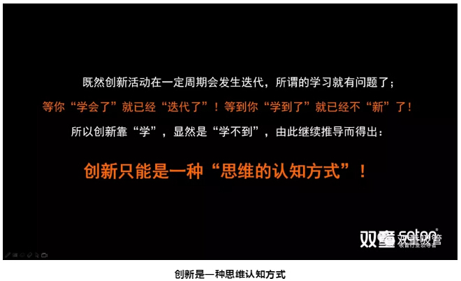所以創(chuàng)新是不斷迭代的,靠“學(xué)”,顯然是“學(xué)不到”,創(chuàng)新只能是一種“思維認知方式”。