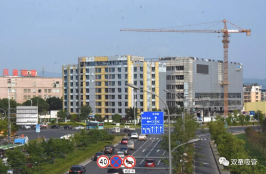 “雙童”二期智能化工廠按高規(guī)格的商業(yè)建筑等級(jí)設(shè)計(jì),在大樓的外墻材料選擇上,“雙童”選擇了高等級(jí)的鋁合金幕墻材料,鋼性好、重量輕、強(qiáng)度高,耐腐蝕性。如今,廠房外墻已初步成型,工人正在安裝鋁合金幕墻和窗戶,施工完畢后將更具現(xiàn)代感和科技感!