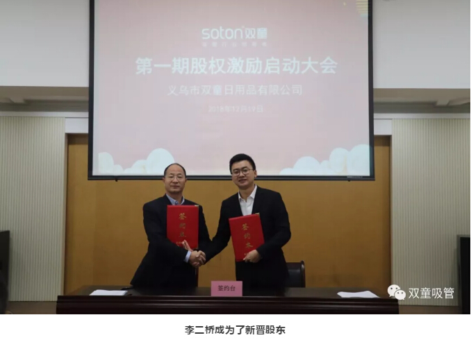 而在2018年12月19日,在“雙童”第一期股權(quán)激勵啟動大會上,“雙童”首批12位核心員工正式簽約成為“雙童”的經(jīng)營伙伴,我們以股份合伙、業(yè)務(wù)合伙等“合伙激勵”的 方式讓優(yōu)秀人才變?yōu)楹匣锶耍寙T工和組織的目標(biāo)長遠(yuǎn)契合、共同生長、共享價值創(chuàng)造的有效延伸!