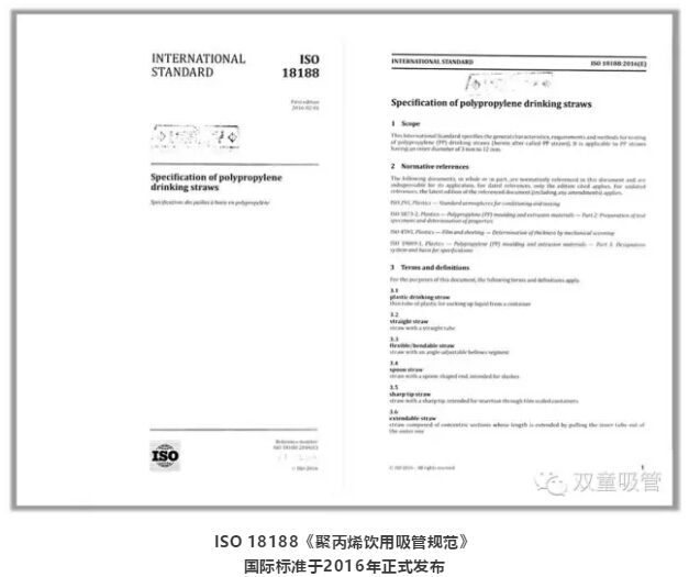 2016年6月27日,“雙童”主導并起草的《聚丙烯飲用吸管規(guī)范》ISO國際標準文本發(fā)布,這意味著“雙童”的吸管產(chǎn)品走在了世界的最前列。