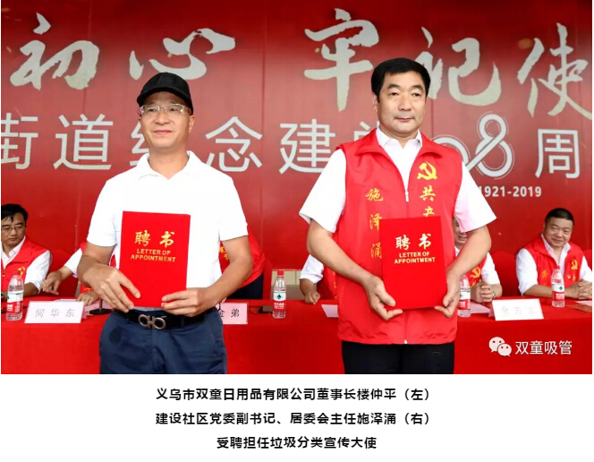 這不,6月29日上午,北苑街道為紀(jì)念中國(guó)共產(chǎn)黨成立98周年,開(kāi)展了建黨98周年慶“七一”專(zhuān)題千人大黨課。“雙童”樓仲平也受邀參加了此次活動(dòng),并受聘擔(dān)任了垃圾分類(lèi)宣傳大使!