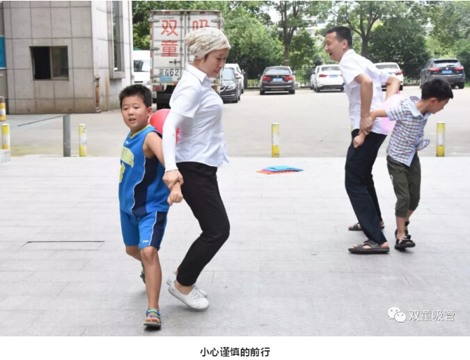 游戲的第一項就是“綁腳前行”!瞧!爸爸媽媽和寶貝們的腳都綁在了一起,這真是最“親密”的瞬間!