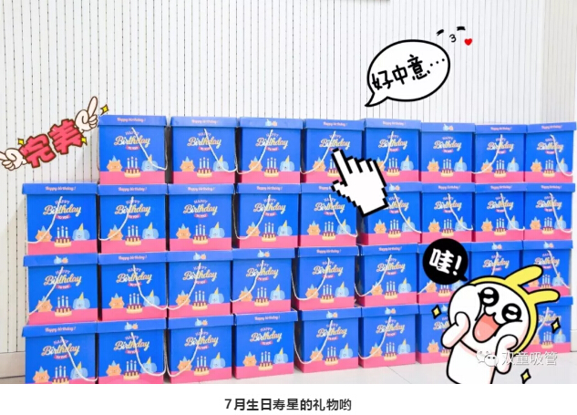 同時,“雙童”也為7月壽星們準備了生日禮物——每人一份生日小蛋糕和大禮包!好幸福呀......