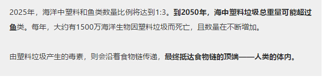 由塑料垃圾產(chǎn)生的毒素,則會沿著食物鏈傳遞,最終抵達食物鏈的頂端——人類的體內。
