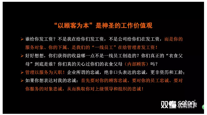 第二問題:對(duì)于管理者來講“以顧客為本”的顧客是一線員工。