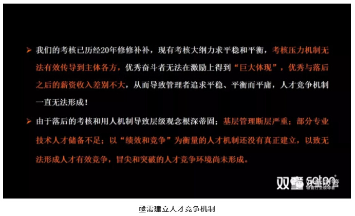 “雙童”20多年以來落后的考核和用人機制,導致了考核壓力機制無法有效傳導到主體各方,不擔當、不作為的的現(xiàn)象極其普遍,因而亟需建立以“績效和競爭”為衡量的人才機制。