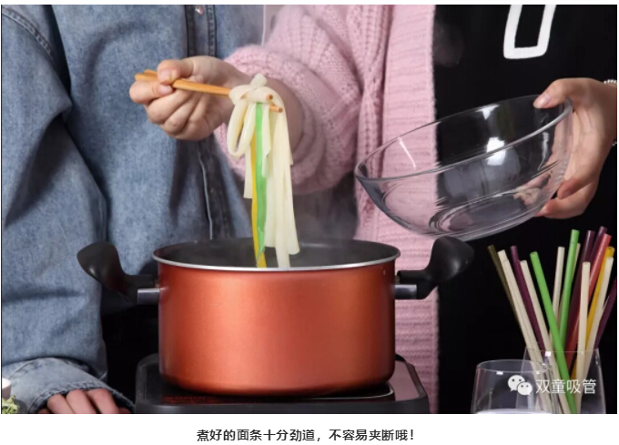 用“雙童”可食用淀粉吸管煮面條,不論是湯面、醬面還是拌面,那味道都是杠杠滴!連懷孕了的吸管妞和年幼的小朋友都能放心享用哦!