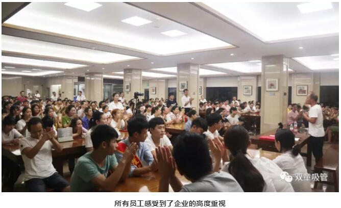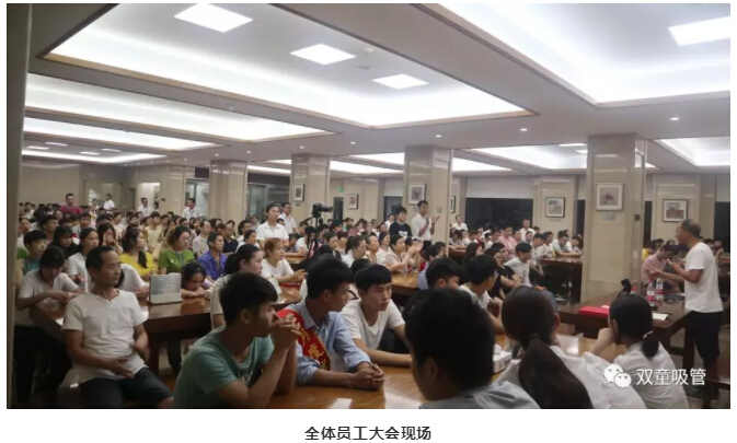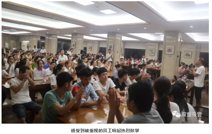 從8月16日開(kāi)始,“雙童”持續(xù)推動(dòng)企業(yè)重大改革,強(qiáng)烈喚醒了員工們的危機(jī)意識(shí)!8月20日晚,"雙童"停下所有生產(chǎn)線(xiàn)機(jī)器設(shè)備,緊急召開(kāi)員工大會(huì)!原來(lái),此次員工大會(huì)以改革為主題,將改革工作深入到所有員工,讓每一位員工得以理解和轉(zhuǎn)變!