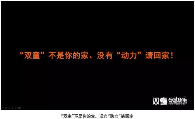 緊接著,樓仲平提出了“‘雙童’不是你的家,沒(méi)有‘動(dòng)力’請(qǐng)回家!”的觀點(diǎn),引出第二個(gè)主題——“以?shī)^斗者為本”的價(jià)值觀。