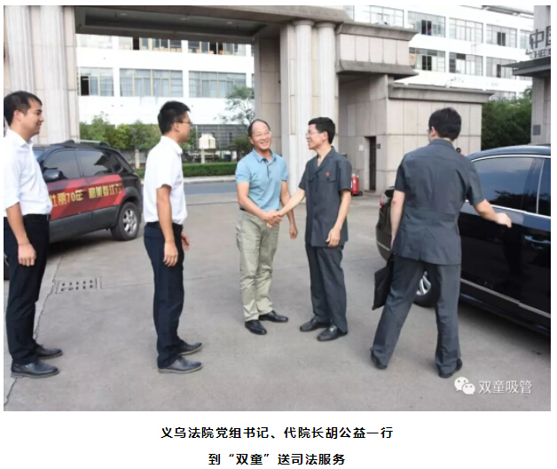 9月9日下午,在“70法官服務(wù)70+企業(yè),打造最佳營商環(huán)境”活動的啟動儀式后,義烏法院黨組書記、代院長胡公益帶領(lǐng)蘇溪法庭、知識產(chǎn)權(quán)庭、辦公室等部門負(fù)責(zé)人第一時間到達“雙童”,了解企業(yè)在生產(chǎn)經(jīng)營過程中的司法需求及送司法服務(wù)。
