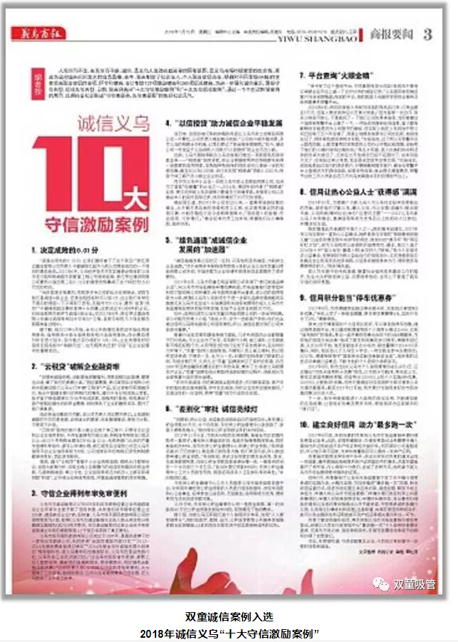 “雙童”也是如此,在經(jīng)營過程中,對社會、對政府、對員工誠信、樹立誠信并傳播誠信,推動企業(yè)在良好的法治環(huán)境下,誠信經(jīng)營,健康發(fā)展!