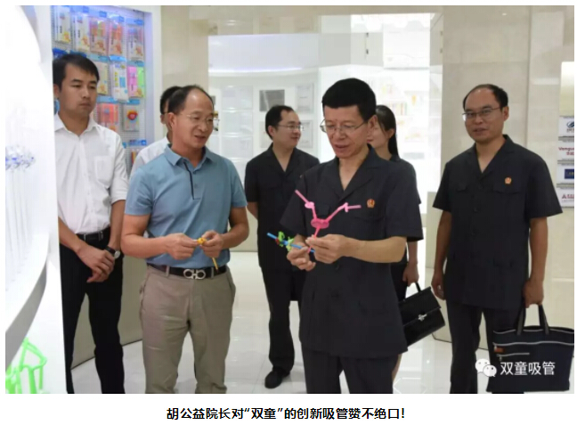 胡公益院長聽完介紹后,對這款綠色環(huán)保的可食用淀粉吸管稱贊連連。
