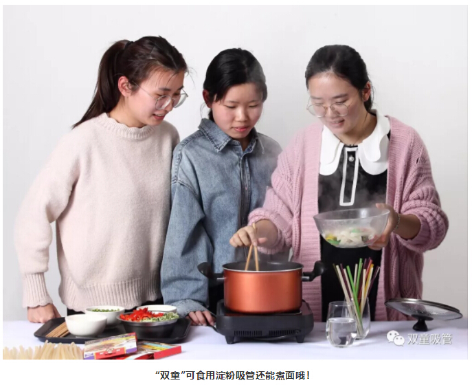 “雙童”可食用淀粉吸管完全采用小麥、大米、玉米、木薯、土豆等天然農(nóng)作物淀粉,經(jīng)高溫、高壓、熟化、擠出、烘干精制而成!