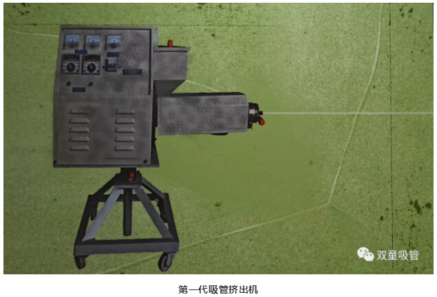 當(dāng)當(dāng)當(dāng)!吸管妞大揭秘啦!下面這臺就是上世紀(jì)七十年代采用的第一代塑料吸管擠出機(jī)。將塑料顆粒高溫融化后擠出、冷卻、切割而形成一根根的塑料吸管。