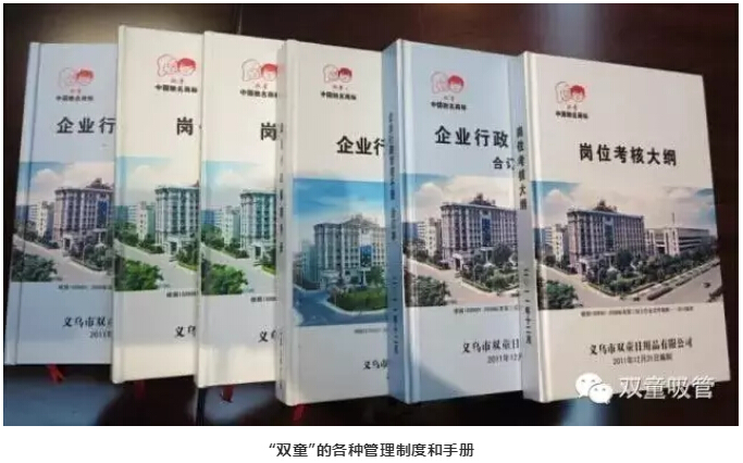 2005年開始,“雙童”陸續(xù)推行了《企業(yè)衛(wèi)生管理手冊》、《寢室管理大綱》 和《企業(yè)行政管理手冊》、《崗位考核大綱》等一系列衛(wèi)生和作業(yè)規(guī)范文件,逐步轉(zhuǎn)向精細(xì)化管理。
