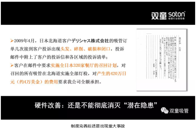 但廁所改善了,生產(chǎn)環(huán)境優(yōu)化了,硬件標(biāo)準(zhǔn)也提升了,重大質(zhì)量事故卻還在不斷發(fā)生!前前后后七八年的時(shí)間里,“雙童”在日本市場栽了不少“跟頭”,虧損了大量資金,在這樣的情況下,選擇“死磕”還是“放棄”?