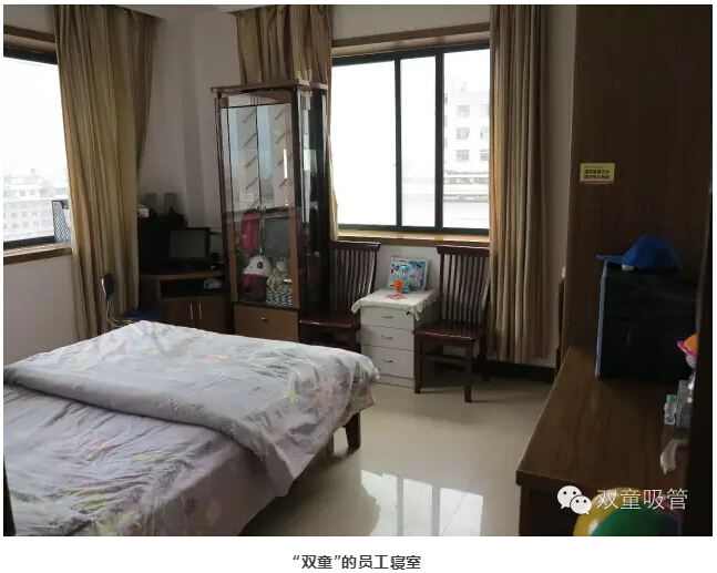 另外,在“雙童”,我們不僅給所有員工提供免費的三星級寢室,提供優(yōu)質(zhì)免費的餐飲服務(wù)。還給行政員工、夫妻工和多年老員工免費配置獨立房間和套房,歡迎行政員工的家屬到公司入住,也鼓勵員工的家屬也在餐廳就餐,員工家屬還能享受半價優(yōu)惠哦!