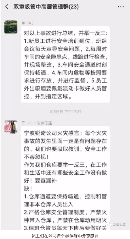 與此同時(shí),針對(duì)此次寧波火災(zāi)的重大事件,“雙童”人也結(jié)合企業(yè)內(nèi)部的安全工作寫(xiě)下了安全感言,從而形成安全生產(chǎn)的高壓線!