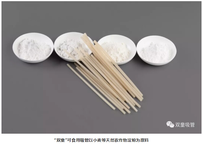 “雙童”可食用淀粉吸管完全采用小麥、大米、玉米、木薯、土豆等天然農(nóng)作物淀粉,經(jīng)高溫、高壓、熟化、擠出、烘干精制而成!