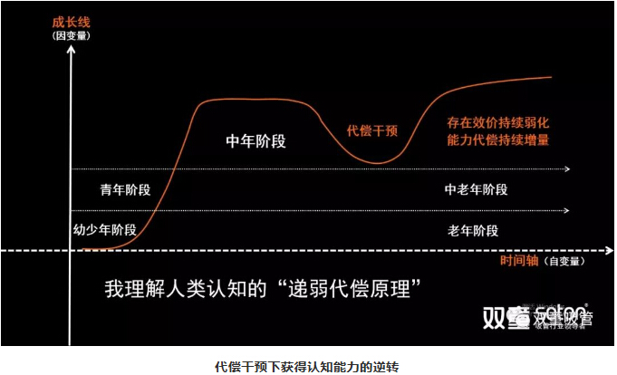 所以,我用一個(gè)“認(rèn)知能力”思維模型給大家說明:人類發(fā)展中的成長性是能夠無窮拓展的。比如正常來講,看一個(gè)人的認(rèn)知能力,從幼年、少年、青年,到中年處于一個(gè)鼎盛階段,到中老年階段之后就進(jìn)入到自然遞減的過程。