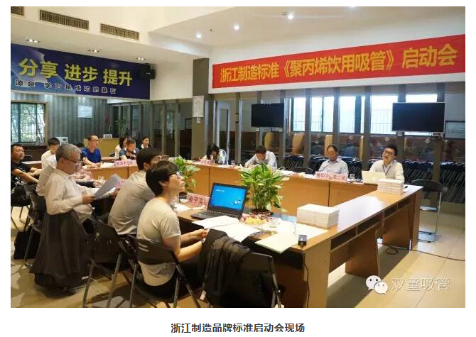 2016年6月24日,“雙童”樓仲平、李二橋和張國俊奔赴杭州的浙江標準化研究院,參加《聚丙烯飲用吸管》浙江制造標準第一次專家評審會。通過這次會議,專家組對此次標準形成了一致的評審意見,對標準的相關內容達成了共識并全部通過。
