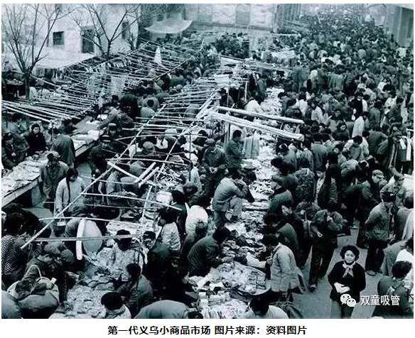 兩年后,樓仲平建議父親去城里“雞毛換糖”,城里人多,能掙的錢也多。到了江西景德鎮(zhèn)之后,他們發(fā)現(xiàn)菜市場門口有人鋪了一塊塑料布,上面放著義烏的小百貨在賣。后來,他和父親也從義烏進(jìn)了一批小百貨,放到菜市場門口賣。直到1982年,義烏提出興商建市的發(fā)展戰(zhàn)略,建成了義烏第一代市場第一代市場——稠城市場正式開業(yè),聚集起了700多個商戶,每家商戶拿一塊板,一塊塑料布就能開店。