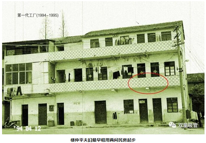 在前前后后經(jīng)歷了擺地攤、有獎銷售、打鐵、當(dāng)“倒?fàn)敗?、養(yǎng)魚等20多個行當(dāng)后,樓仲平在1991年回到了義烏,用2000元租了半個攤位,抽簽時抽到了日用百貨。于是,他就找到了塑料吸管等一次性塑料用品,通過兩年的時間,把塑料吸管賣到了義烏市場的銷量NO.1。在1993年,義烏市政府引導(dǎo)工商經(jīng)營戶“以商轉(zhuǎn)工”,“以貿(mào)轉(zhuǎn)工”,“工貿(mào)結(jié)合”,鼓勵個體戶做實業(yè)加工。當(dāng)時,大家都不看好吸管這個產(chǎn)品,因為吸管算的上是義烏小商品當(dāng)中最難做的生意,但他依然選擇扎根于這個行業(yè)。在一次機(jī)緣巧合下,樓仲平買下了加工吸管廠老板的機(jī)器,開始接觸了吸管的生產(chǎn)制作。在1994年,樓仲平夫婦在福田鄉(xiāng)寺后盛村租用了兩間普通民房作為生產(chǎn)場地,邁出了吸管創(chuàng)業(yè)的第一步。就這樣在經(jīng)歷了多個行當(dāng)?shù)氖『?,終于在吸管這個行業(yè)上扎根!