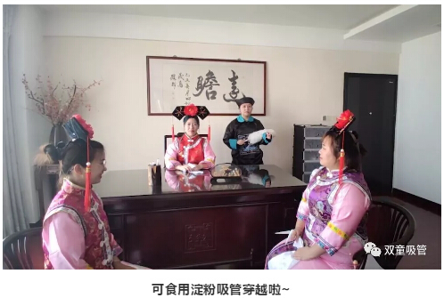 原來純妃獻(xiàn)出的是一款神奇的吸管,名曰可食用淀粉吸管。由義烏的雙童吸管工坊歷經(jīng)三年時間精制而成!