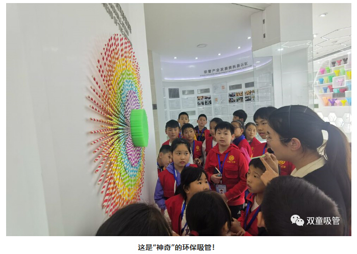活動(dòng)結(jié)束后,這群小記者們遲遲未離開“雙童”廠區(qū),究竟又在做什么呢?原來(lái),大家是特地在中國(guó)吸管博物館門前為“雙童”的環(huán)保吸管代言呢!