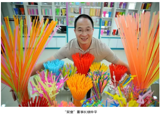 義烏商人,多經(jīng)歷過“雞毛換糖”的故事。義烏市雙童日用品有限公司董事長樓仲平也不例外,14歲開始走街串巷,賣過牙刷,擺過地攤,做過鐵匠,搞過養(yǎng)殖,倒過服裝……從事過20多個行業(yè)。1994年,一個偶然的機會,樓仲平選擇了“一根小吸管”,開啟了自己的實業(yè)之路,創(chuàng)立“雙童吸管”。