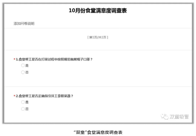 在此次后勤團(tuán)隊競賽中,評比依據(jù)主要是以食堂成本控制、食堂安全、衛(wèi)生、質(zhì)量等方面進(jìn)行評比,其中尤為重要的一個指標(biāo)就是員工滿意度,公司每月會進(jìn)行2次員工滿意度調(diào)查,抽取60名員工對食堂工作進(jìn)行評價,以此作為評比依據(jù)。
