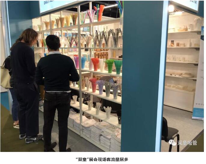 展會期間,盡管中國館的參展商不多,但每天都有絡(luò)繹不絕來自全球各地的參展商到“雙童”展位駐足洽談,對“雙童”的各類吸管、可降解材質(zhì)包裝盒等產(chǎn)品表示了濃厚的興趣。