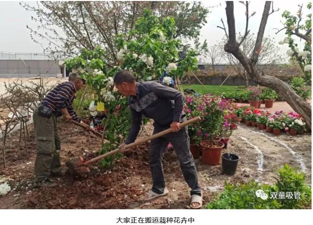 園藝師們將一棵棵花卉栽種到花池中,樓大大更是變成了設(shè)計(jì)師,親自上場(chǎng)布置花卉,拿起鏟子十分像樣呢!